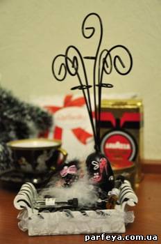 Мне трудно в это поверить, но я уже какое то время искала и не могла найти такую подставочку под украшения, я очень люблю бижутерию, у меня огромное количество сережек, цепочек, бусиков, все это крайне трудно организовать на полочках, чтобы хранить в порядке, я видела похожие предметы, как эта подставочка с кошечкой, но не могла купить, там где я это видела это стоило абсурдных денег. И вот, у меня это есть!!!!!!!! Спасибо за чудесный кофе, конфеты мои любимые, какая удивительная чашка, а эти прекрасные ароматы, это чудо, спасибо, спасибо!!!