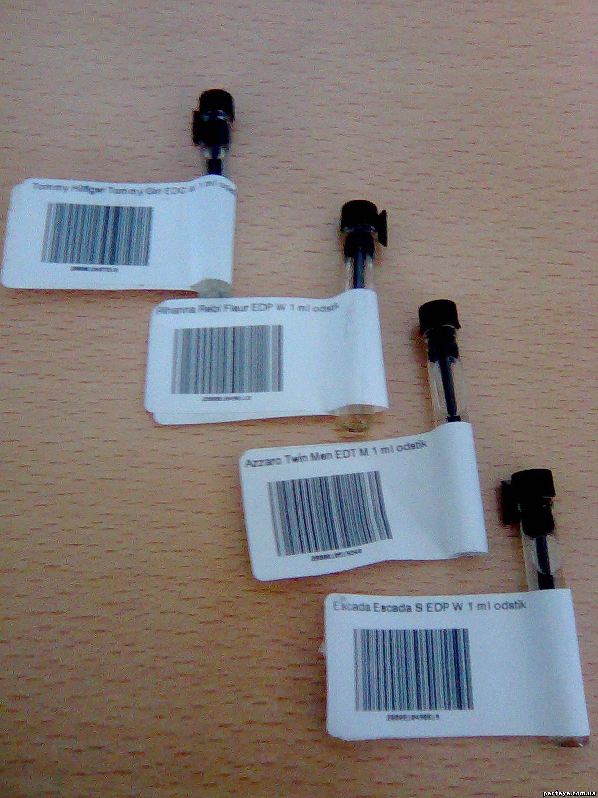 Получила заказ с парфюмерии. По полноразмерным пока не могу ничего сказать - коробки с тиснениями, еще поизучаю. А вот виалы удивили - одинаковые без опознавательных знаков пробирки с наклейками-штрихкодами, где собственно и указано название. Что за розлив?