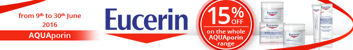 скидка 15% на линию для обезвоженной кожи Eucerin Aquaporin